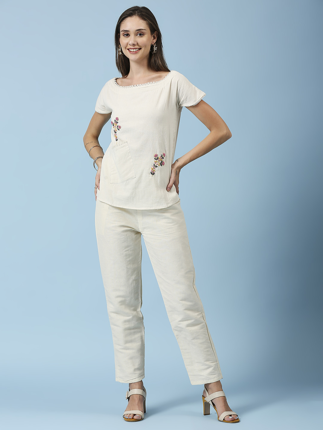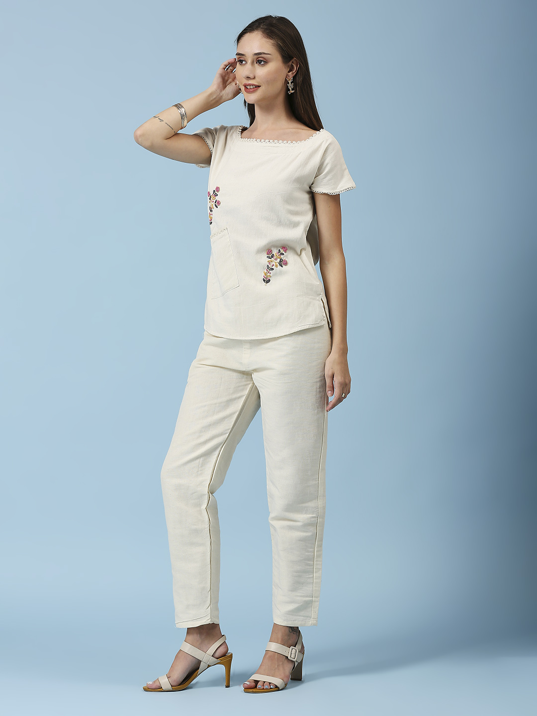 Introducing the Pink Flower Designer Co-ord Set, a stunning addition to our special collection. This unique outfit features exquisite embroidery work on pure cotton khadi fabric, ensuring both comfort and style. Available in sizes M (38), L (40), XL (42), and XXL (44), it’s designed to flatter a variety of body shapes. Celebrate your individuality and make a statement with this beautiful co-ord set, perfect for any occasion.